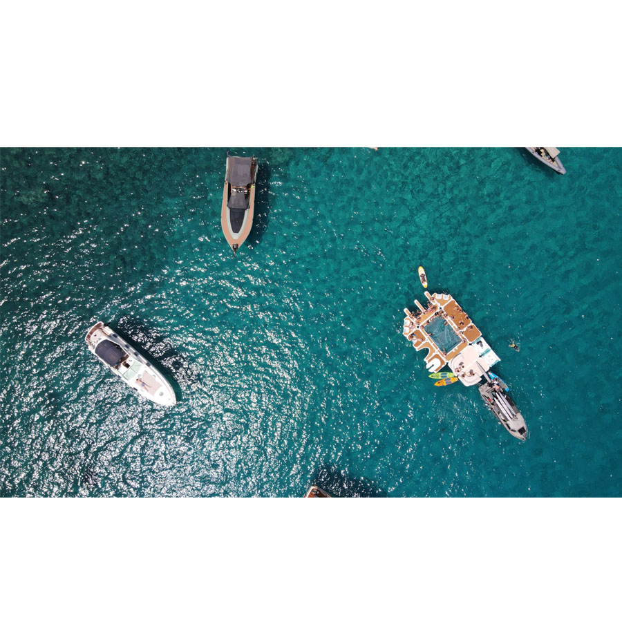 YACHTBEACH is also the perfect platform for fitness, yoga and mindfulness as well as a floating party lounge for social evenings with friends. This piece of freedom can be combined multi-functionally and in various ways. The point connection allows the perfect docking station for Jet Ski, Tender, Seabob, SUP, eFoil and much more.