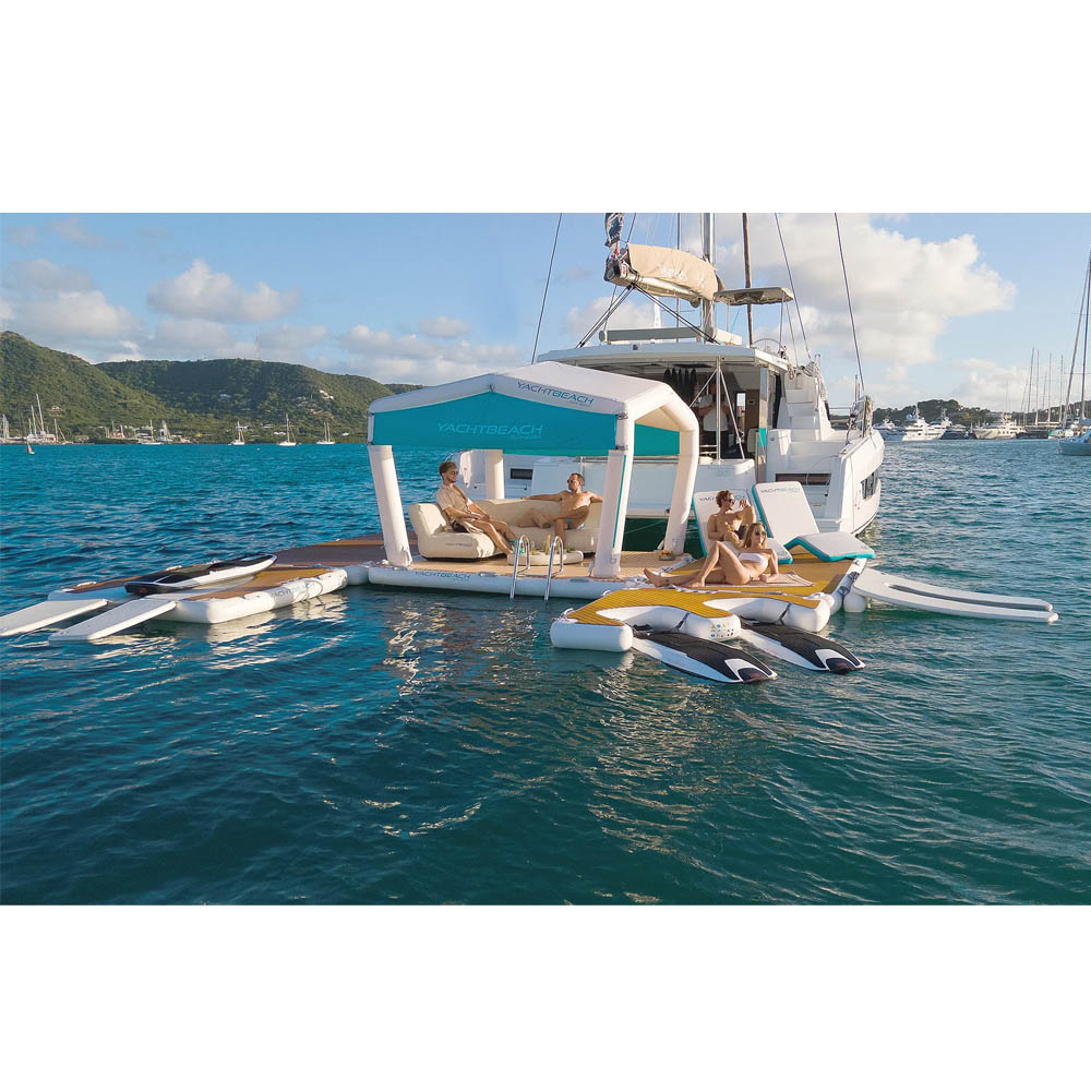 With an ANTI-SLIP PVC TEAK surface, the Yachtbeach Square Platform offers safety and a classy look, giving a secure grip. Whether sunbathing, relaxing, or adding space to your yacht, this inflatable floating dock is just right.