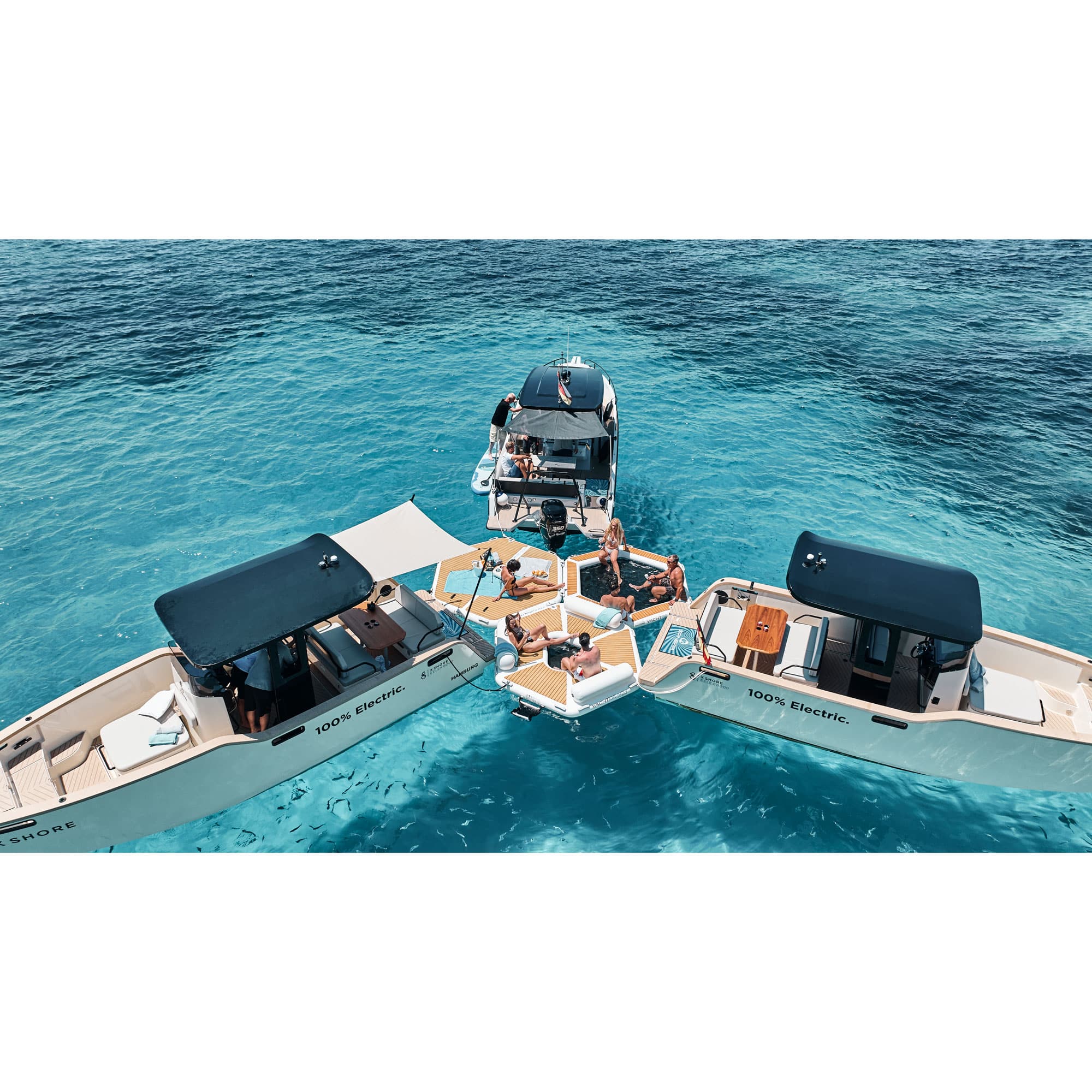 The Yachtbeach Sport Zone 2.50 Hex Platform expands your yacht’s space and enhances your time on the water. You can use it for yoga, docking water toys, or relaxing with friends. Its hexagonal shape lets you connect it easily to other Yachtbeach platforms, allowing endless layout options.